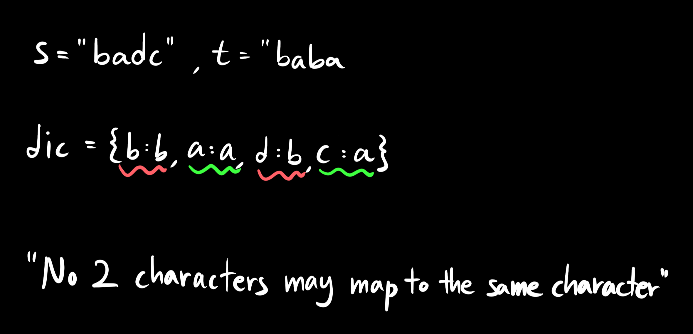 Since we'll be mapping characters of s to characters of t, we'll use a dictionary.
